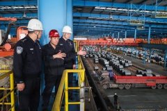 日照港三公司岚山操做部担任人王培健正在接管中青报中青网记者采访时,用开...