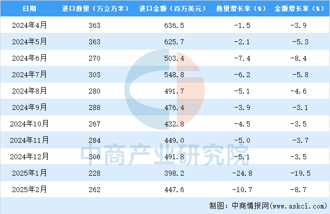 2025年1-2月中国原木进口数据统计阐发:进口量同